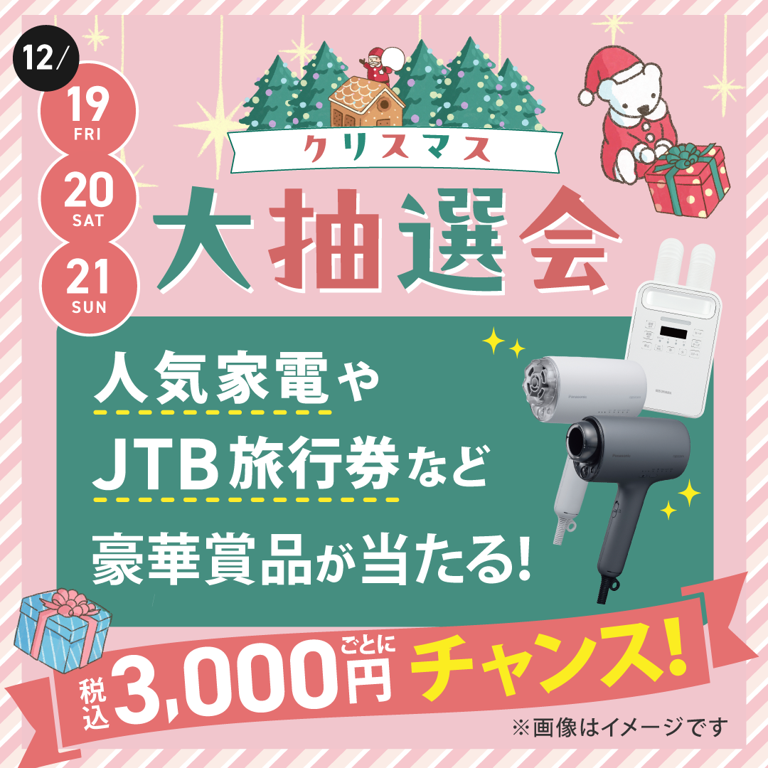 期間中、対象店舗にてご利用3,000円ごとに抽選券を1枚、1,000円ごとに抽選補助券を1枚お渡しいたします。