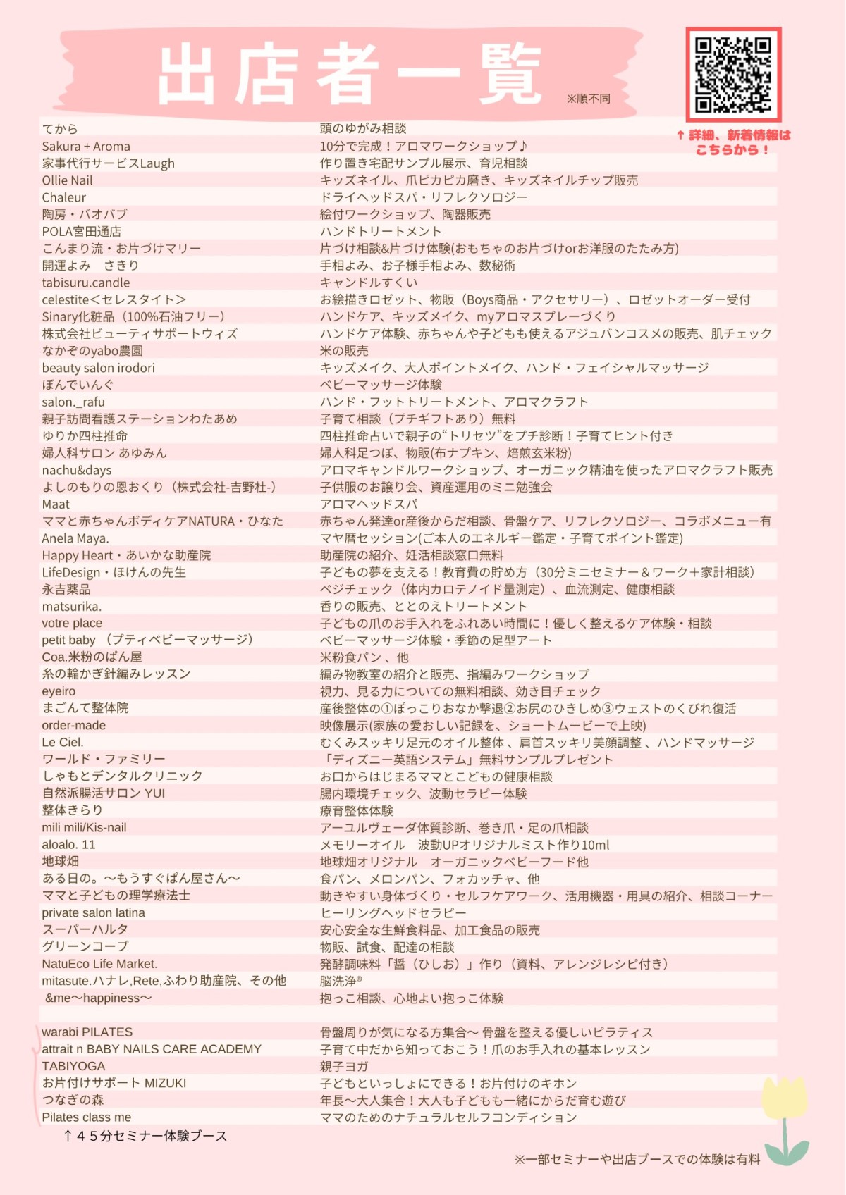 無料やワンコインの体験、相談ブースから、有料のものまで様々です!