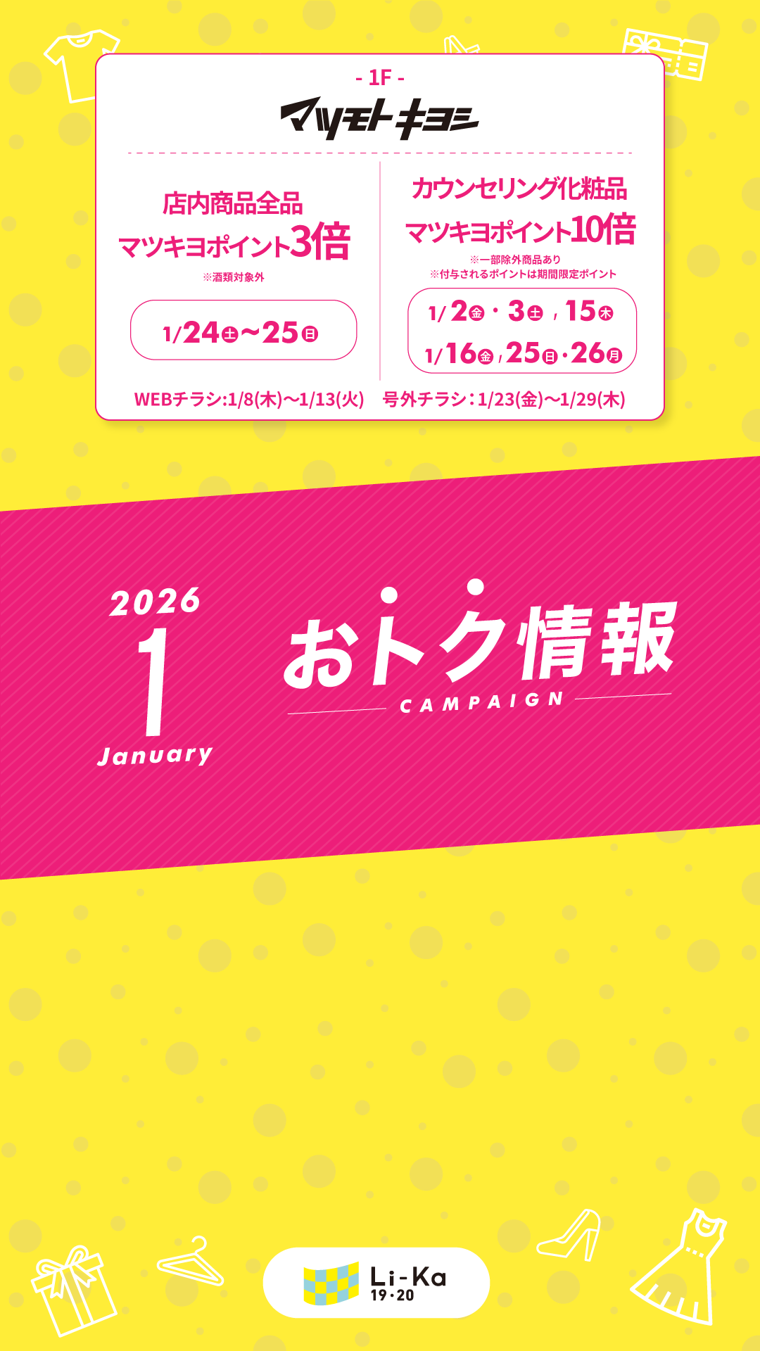 イベント&キャンペーン Home イベント&キャンペーン キャンペーン 1月のおトク情報はこちらから♪♪ライカでおトクに買い物を楽しんじゃおう! 1月のおトク情報はこちらから♪♪ライカでおトクに買い物を楽しんじゃおう!キャンペーン 記事一覧へ戻る