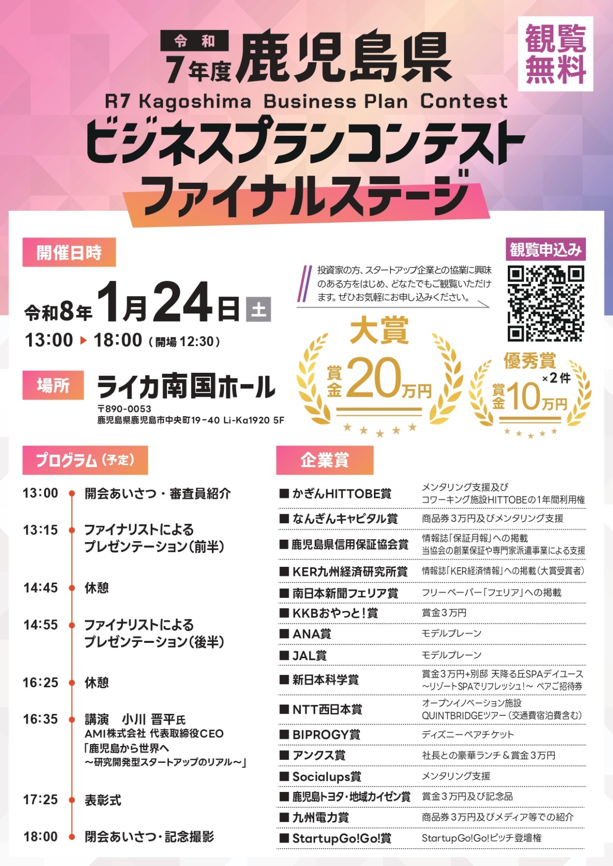 【観覧無料!】令和7年度 鹿児島県ビジネスプランコンテストファイナルステージ