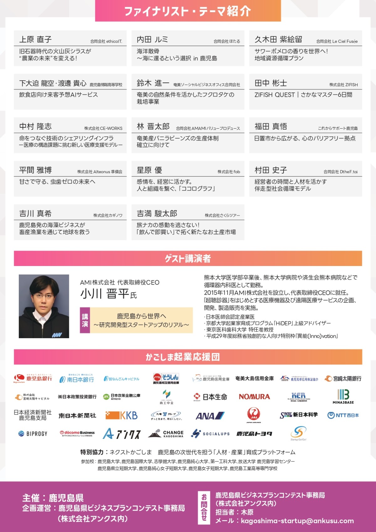 主催:鹿児島県 / 企画運営:鹿児島県ビジネスプランコンテスト運営事務局(株式会社アンクス)