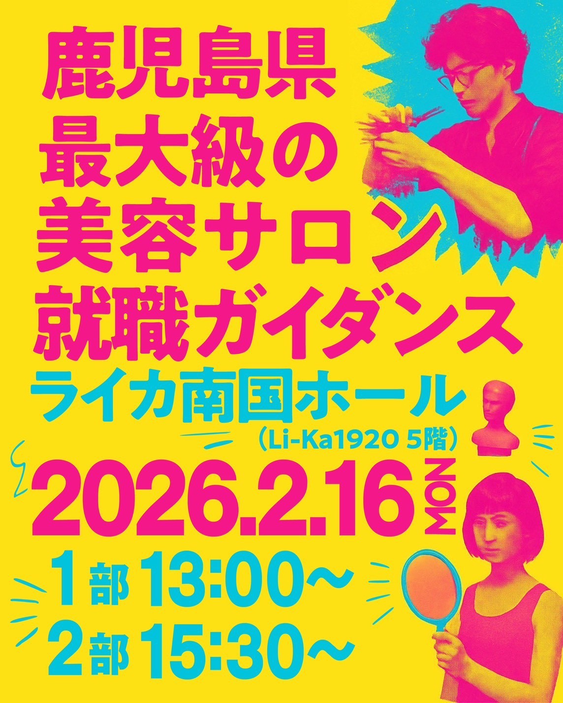 イベント&キャンペーン Home イベント&キャンペーン ホール 鹿児島県最大級の美容サロン就職ガイダンス 鹿児島県最大級の美容サロン就職ガイダンスホール 開催日 2026/2/16-2026/2/16 開催場所 ライカ南国ホール 【日時】 2026年2月16日(月) 1部 13:00~(開場 12:40~) 2部 15:30〜(開場 15:15~) 【場所】 ライカ南国ホール(Li-Ka1920 5階) 【入場料】 無料 ※学生限定となります 問合:株式会社BLESSJAPAN ☎︎ 080-5274-2356(担当:叶) ホームページはこちら 記事一覧へ戻る