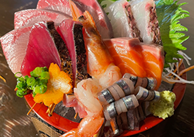 自社で枕崎の鮮魚仲買もしており、「地域の魚の発信と姉妹都市稚内の北海道食材を発信する」をコンセプトにプロが目利きした鮮度抜群の魚を藁焼きや昆布じめといった職人の技を融合して提供させていただきます。