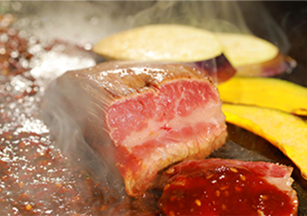 鹿児島を代表する黒毛和牛と海老、ホタテなどの海鮮、旬野菜の素材を生かして焼く鉄板料理をビール、ワイン、焼酎などのお酒とともに、気軽に楽しめるお店です。お食事のお客様には羽釜で炊く銀しゃりが鉄板料理に最高に合います。