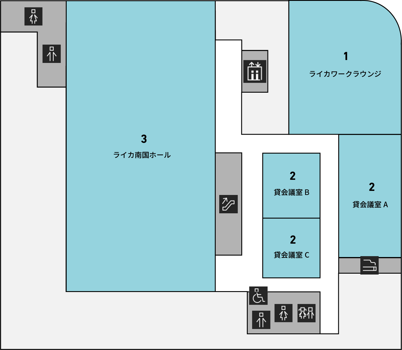 会議やセミナー、ワークショップなど大小様々な用途に対する3つの貸会議室を備えております。