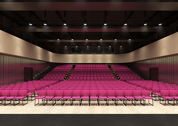 移動観覧席を備えたビジネスからエンターテインメントまでを幅広くカバーする最新鋭の多目的ホール。展示会や講演会のほか、音響・照明演出を行う音楽ライブ等にも対応しております。